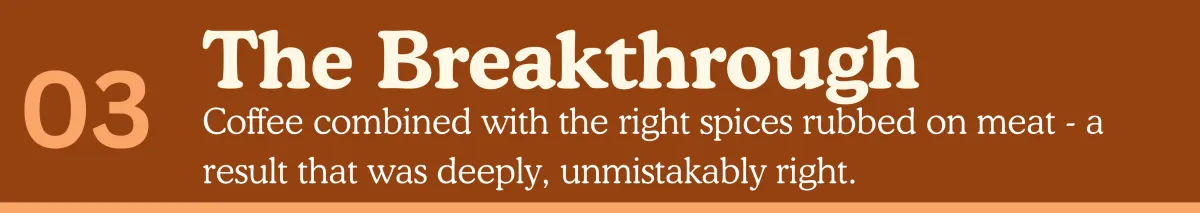 Progress came slowly, then suddenly. One day, the combination of coffee and carefully chosen spices - rubbed onto meat before cooking - produced a result that stopped her in her tracks. Something deep. Complex. Unexpected. Completely her own.